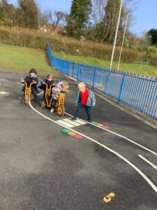 The funding enabled ‘Project Playground’ to create a road track and parking bays for bikes and scooters on the reception playground and an exciting exercise course for the free flow playground.